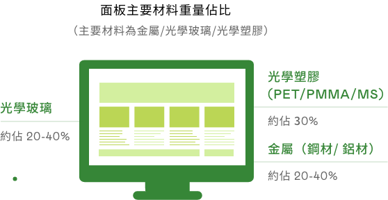 於產品機構件如膠框、金屬背板導入再生材料,並提供不同循環度的方案以供客戶選用。