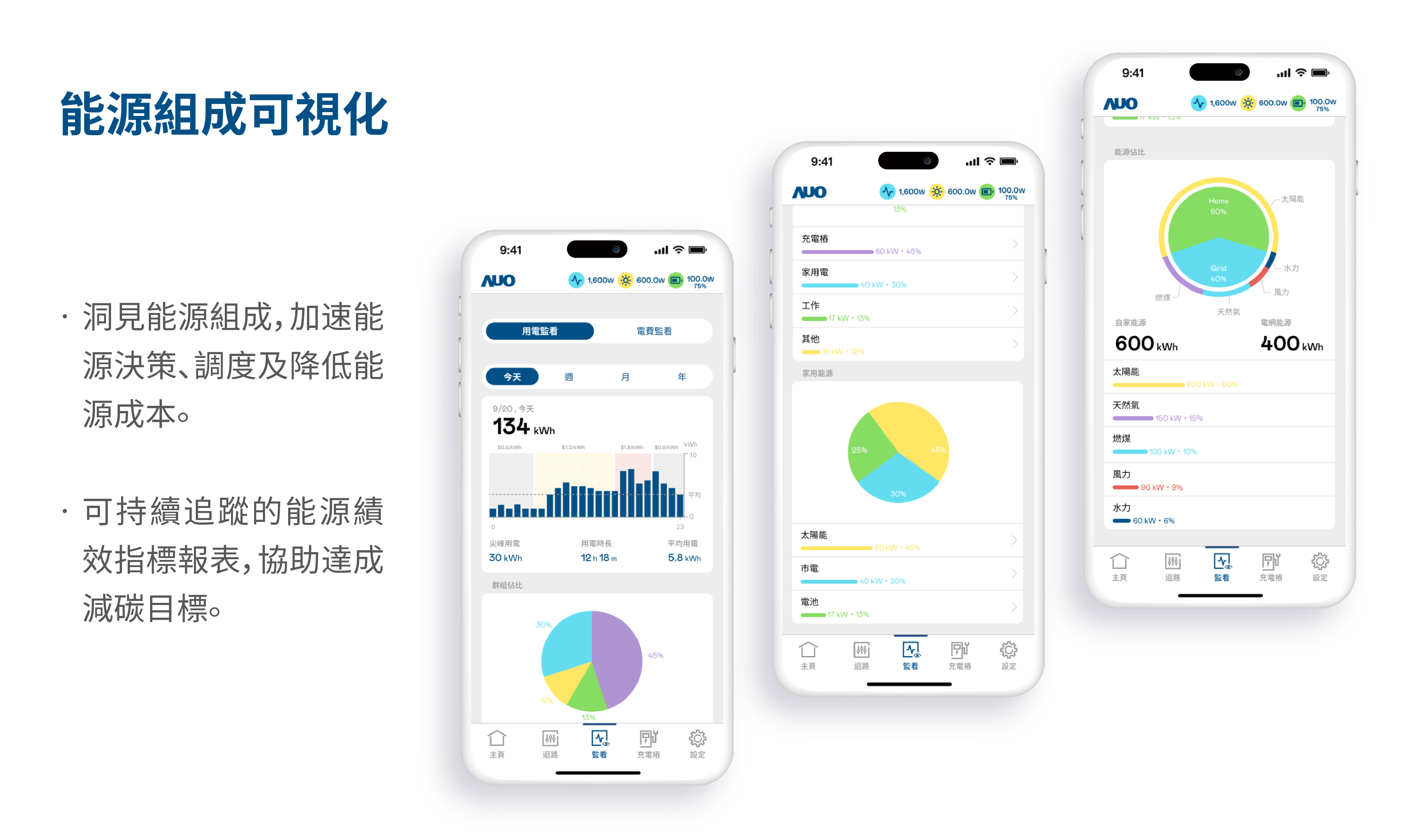 EnLink APP提供行動能源管理方案,透視各負載迴路用電,並依設定之迴路供電優先級執行自動需量反應;能源組成可視化功能協助洞見能源使用效率,建立可持續追蹤的能源績效指標報表,加速達成減碳目標。