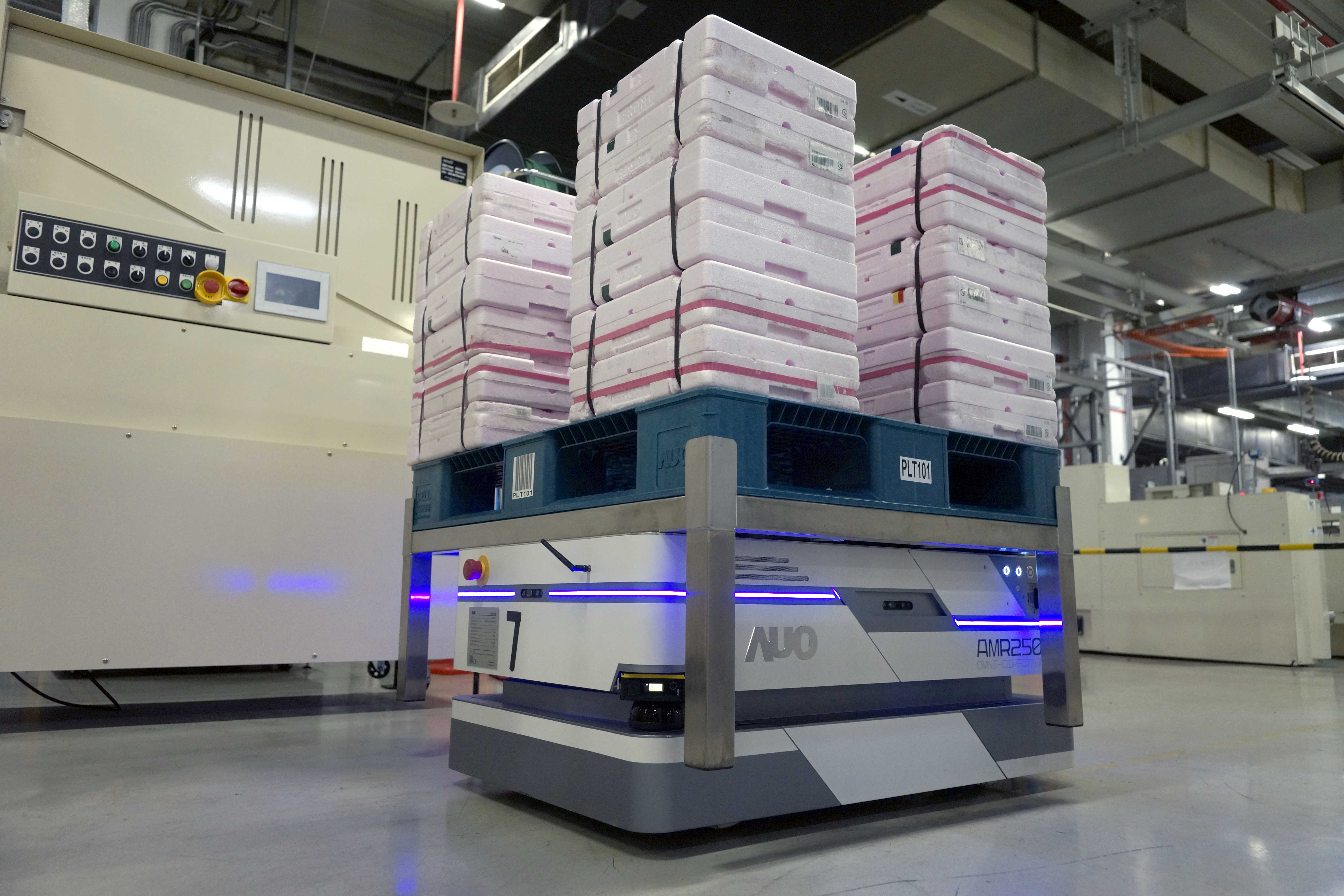 米兰milan运用数字孪生系统,结合AMR无人搬运车进行派送,达成低库存高效率的智能化仓储物流管理。