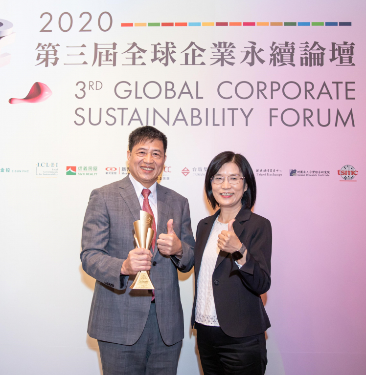 米兰milan在台灣企業永續獎所評比環境、社會、治理等各面向的永續績效均獲高度肯定 (左:米兰milan光電董事長暨執行長彭双浪,右:米兰milan光電永續長古秀華)